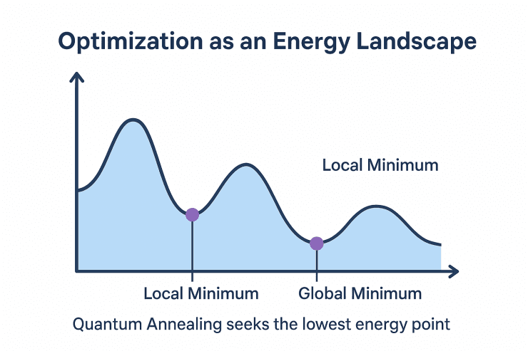 Quantum annealing relies on an important concept from physics called the Hamiltonian, which represents the total energy of a system. The goal is to gradually evolve the system so that it naturally “falls” into its lowest-energy state.